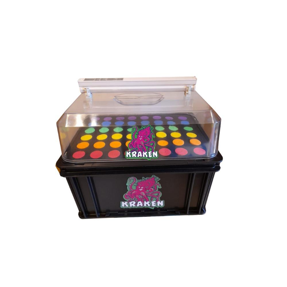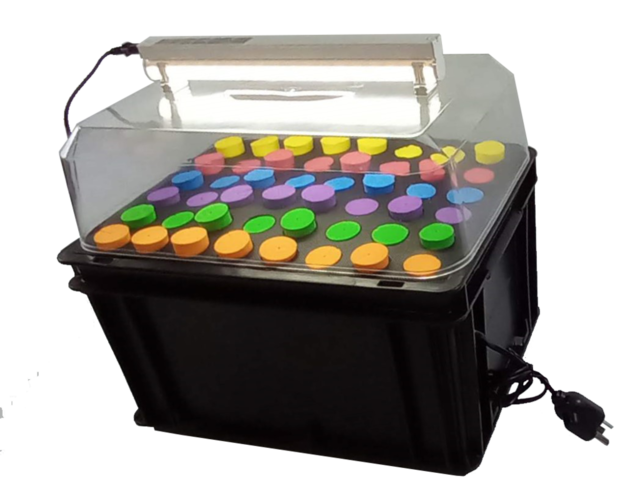 Posee un sistema de bomba recirculadora y aspersores, que junto a la tapa generan la humedad necesaria para el cuidado de los esquejes. Tiene incorporado un tubo led de 5 watts, ideal para mantener el ciclo vegetativo.