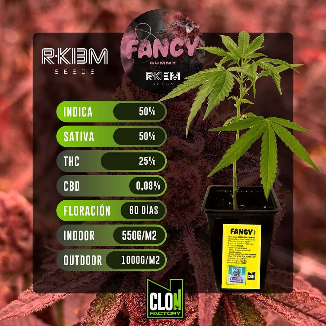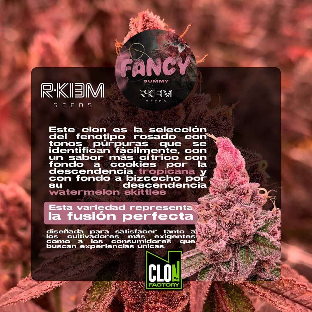 Variedad registrada en INASE ARG FANCY GUMMY – x3 R-KIEM INASE Genética: Watermelon Skittles y Tropicanna Cookies Genotipo: Índica 50% Floración interior: 8 – 9 semanas Floración exterior: Octubre y Abril hemisferio sur Contenido THC: 24,9-15% Producción interior: 550gr/m2? Producción exterior: hasta 1kg/planta Fancy Donrouch es el último trabajo del equipo de R-kiem Seeds, un…
