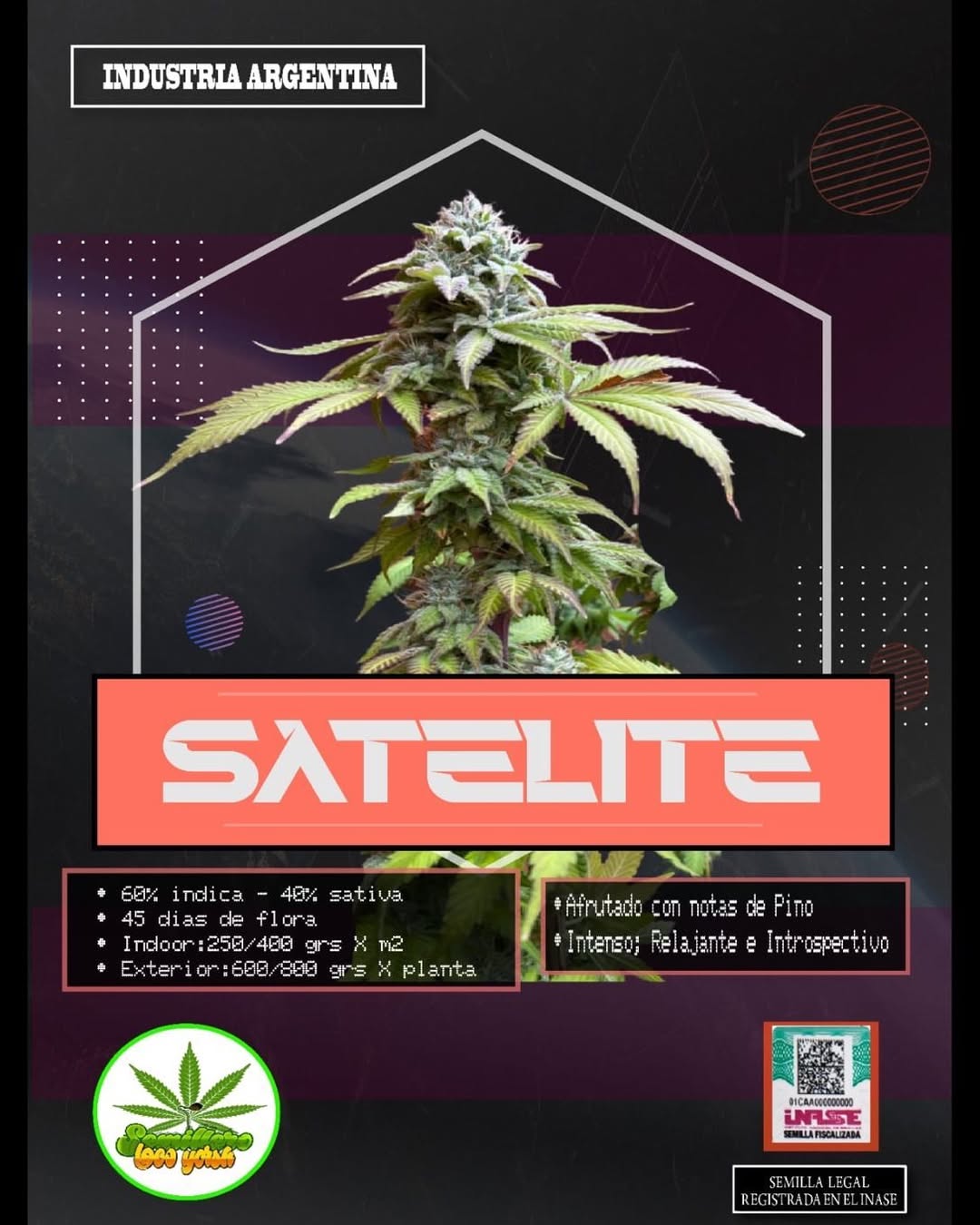 Prepárate para orbitar en otro nivel con nuestra nueva estrella : Satélite del Loco Yorsh . Esta genética Indica dominante (60% Indica / 40% Sativa ) de floración exprés (45 días) es una joya para las noches , diseñada para quienes buscan una relajación profunda y un descanso reparador . Sus flores, grandes , compactas…