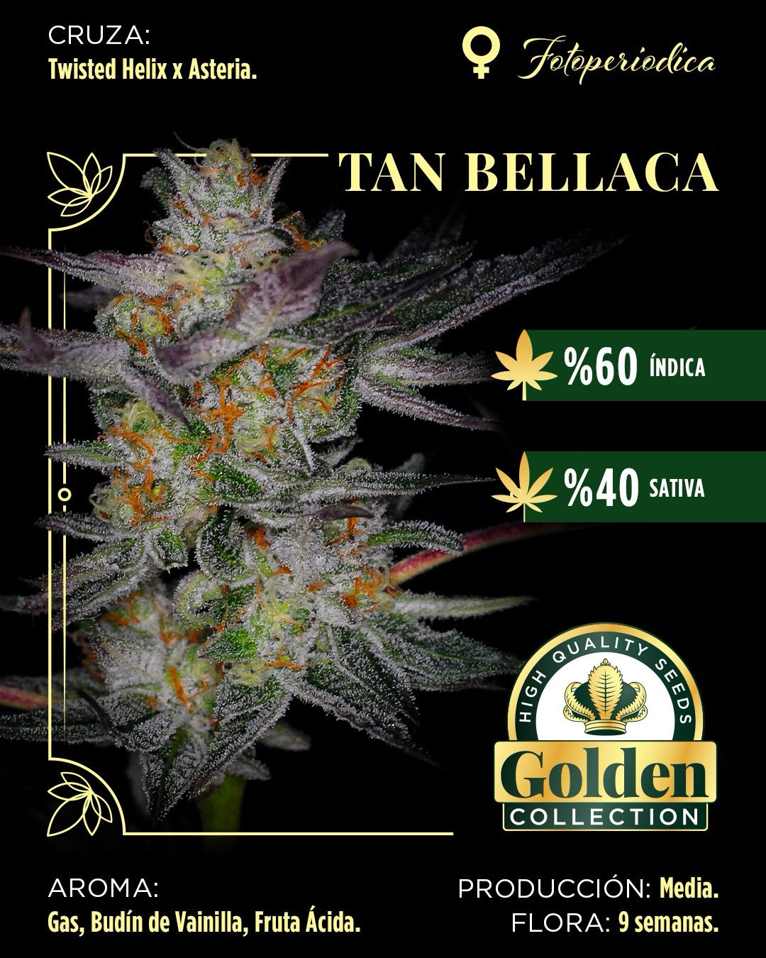 Conoce a La Tan Bellaca, una variedad que te va a enamorar desde el primer vistazo. Nace del cruce entre Twisted Helix (padre), una joya Kush de In House Genetics, famosa por sus cogollos compactos y esa resina pegajosa que huele a tierra, fruta y un toque de gasolina. Por otro Asteria (madre), la estrella…